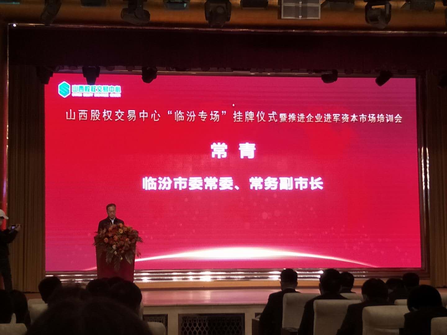 其間,臨汾市委常委、常務(wù)副市長(zhǎng)常青發(fā)表賀辭,山西股權(quán)交易中心黨委書(shū)記、總經(jīng)理郭彪發(fā)表講話(huà)。